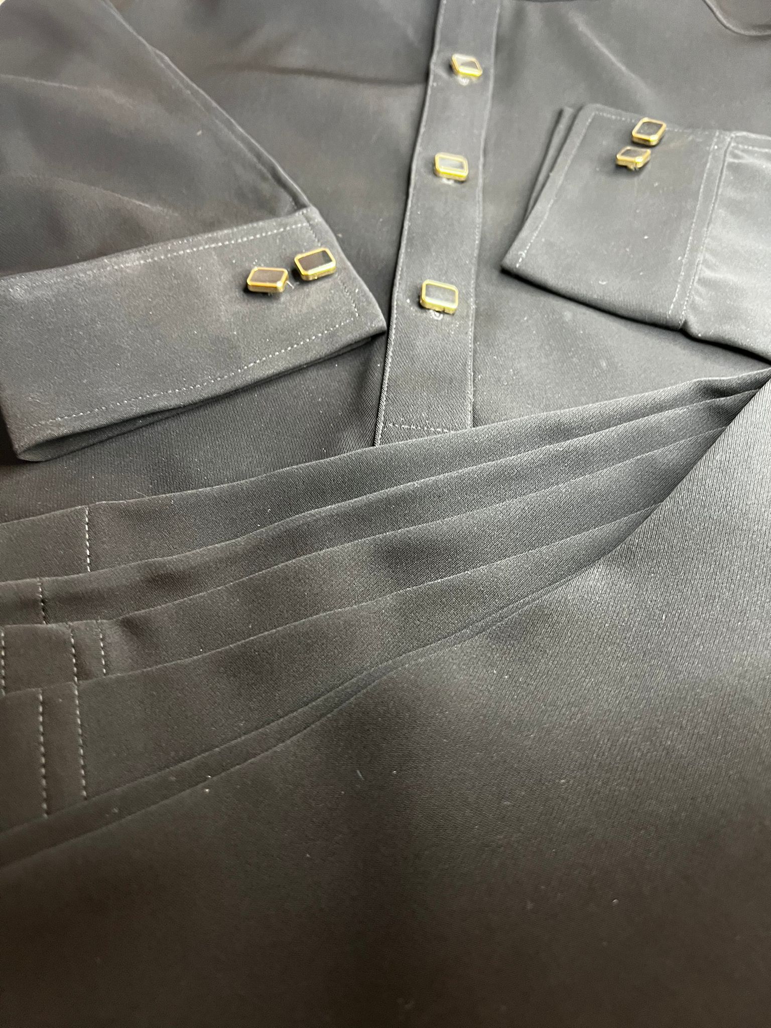 Indulge in luxury with our Black Fabric Designer Shalwar Kameez. Hand-stitched by experienced tailors, this wrinkle-resistant attire boasts a deep, rich black hue. Its carefully chosen buttons add a touch of refinement, making it perfect for any occasion. Make a statement with this masterpiece.